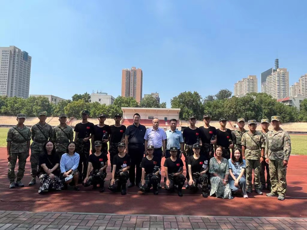 军训期间,国际学院党委书记李华峰,院长陈思坤,党委副书记赵强到操场看望正在训练的2023级参训学生及教官。院领导向承训教官表示亲切慰问,对教官们的业务水平和带训能力给予高度肯定。