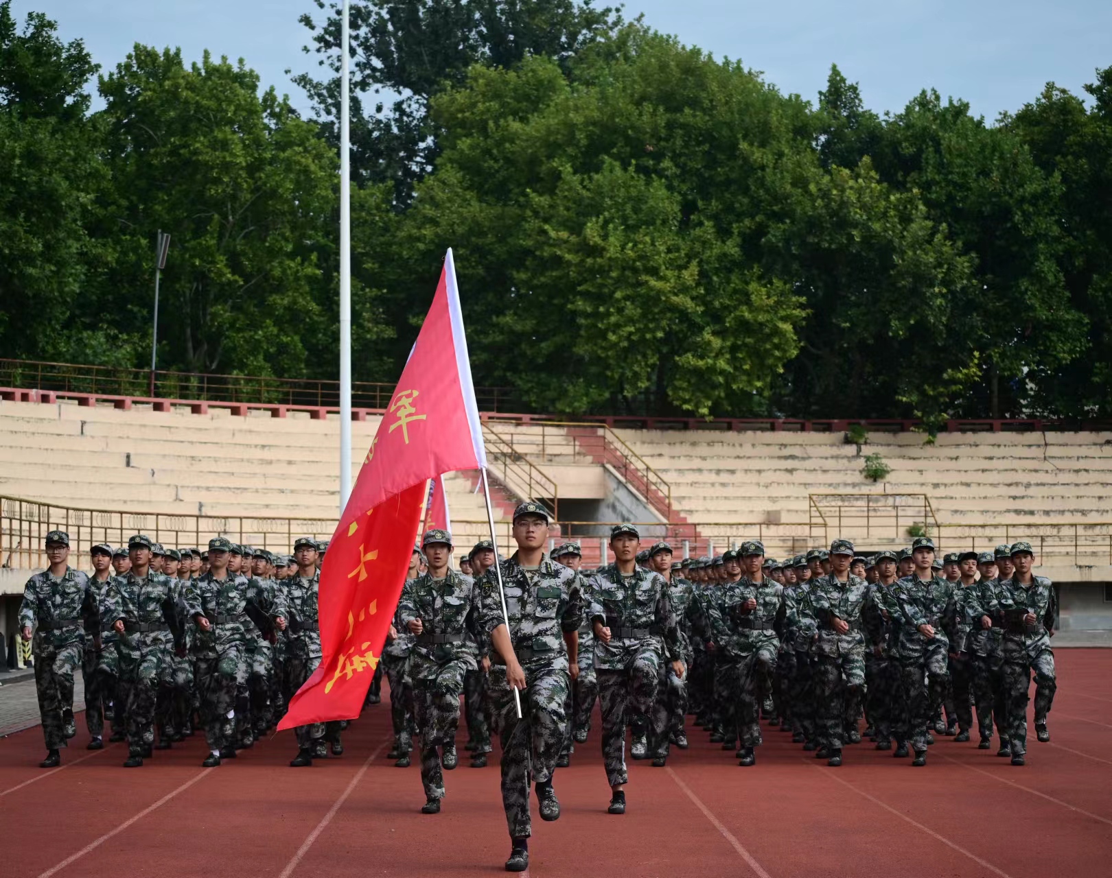 时维九月,序属三秋。训练场上,鲜红的旗帜、迷彩的军装,骄阳似火、意志如钢。这是属于23级新生独家的青春印记、成长足迹,洗去的是随性的不羁,留下的是坚韧的意志。