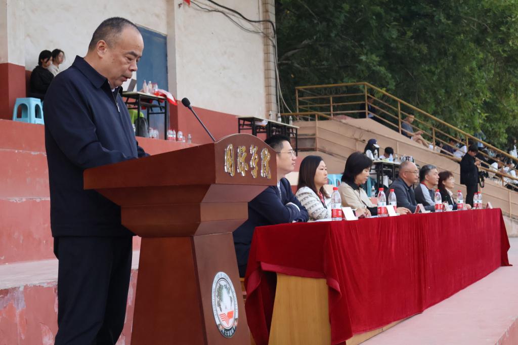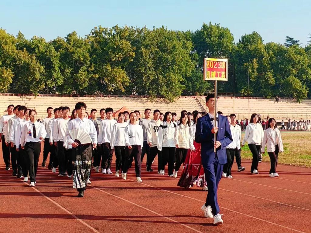上午八时三十分,运动会正式拉开帷幕。由国际学院国旗护卫队、军乐团和各专业组成的20支仪仗队与运动员们迈着整齐的步伐向主席台走来。国际学院院长陈思坤致开幕词,他表示,这次秋季运动会是一场大家期待已久的体育盛会,也是我院师生精神风貌的集中展示,希望运动员赛出风格、赛出水平;裁判员恪尽职守、秉公执裁;广大师生不断增强体质,提高体育修养,把高昂斗志和进取精神凝聚到学院高质量发展的征程中去,不断展现新作为,作出新贡献。随后,张行简同学和李帆同学分别代表运动员和裁判进行庄严宣誓。