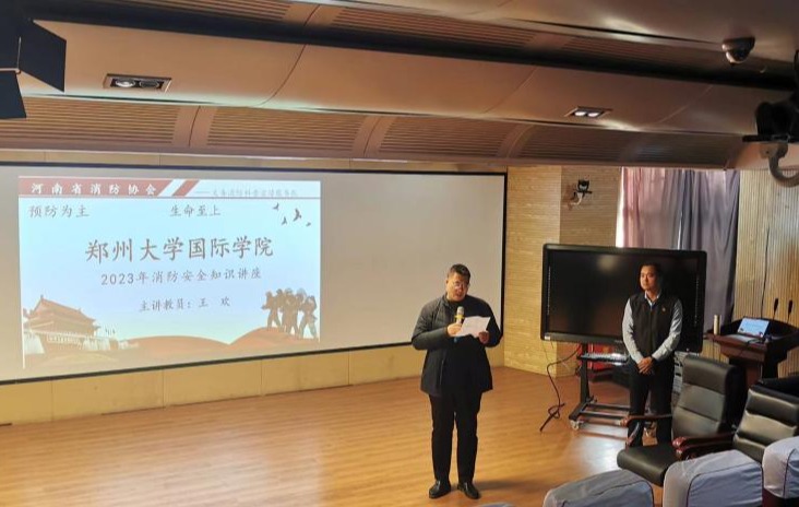 “预防为主,生命至上”消防安全知识主题讲座在郑州大学南校园14号教学楼201会议室举行,国际学院特邀河南省消防协会教员王欢作为本次讲座的主讲人。王欢教员列举大量火灾案,警示师生要重视消防安全,并从初期火灾处置和疏散逃生方法、日常宿舍办公室防火注意事项等方面深入系统讲授了应知应会的消防安全常识,并示范了部分消防器具如防毒面具的正确使用方法。最后,王教员提醒我院师生,“消防无小事”,一定要做到“人走电断”,防止火灾发生。