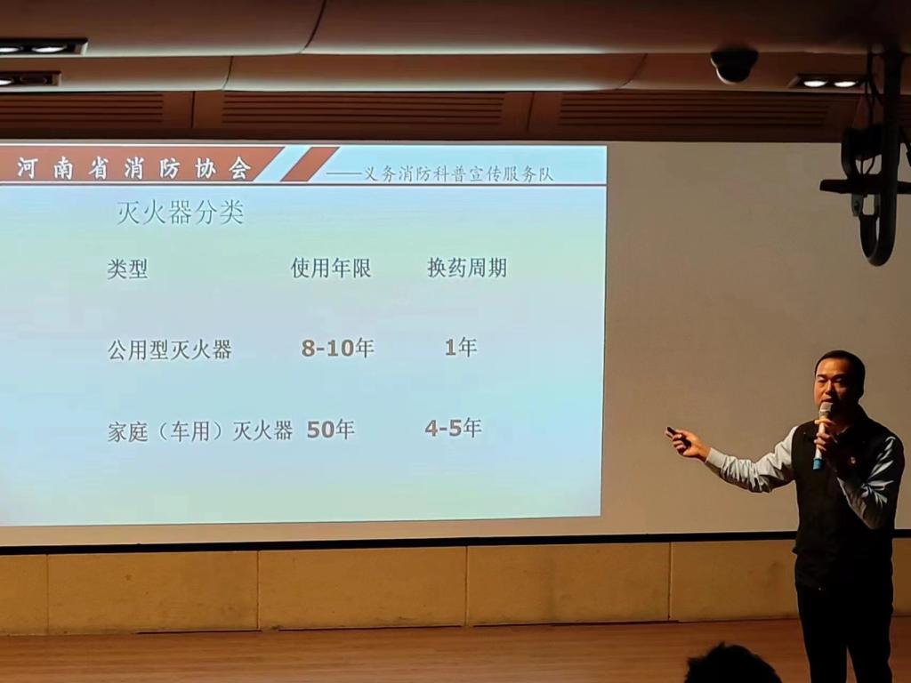 图3.河南省消防协会教员王欢为师生作消防安全讲座