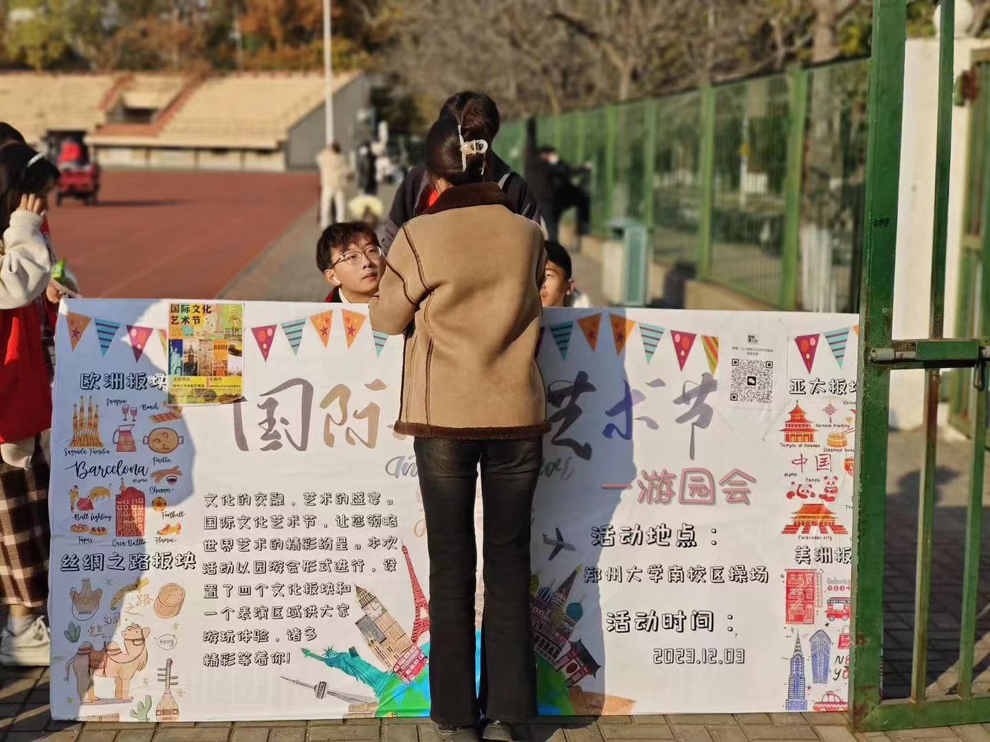 12月3日,郑州大学国际学院举办“国际‘郑’青春 多彩新时代”校园国际文化艺术节游园会活动,本次活动由国际学院团委主办。游园会分为亚洲文化、欧洲文化、美洲文化以及丝绸之路文化四个体验区,每个区域包含多项独具国家或地方特色的活动,吸引了郑州大学南校园数千名师生员工的驻足与参与。