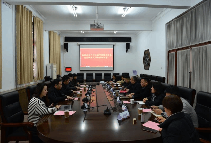 12月12日上午, 广州工商学院董事、国际教育学院副院长陈武,联合科技学院党支部书记、国际教育学院副院长黄喆诚一行五人来学院交流,学院党政领导班子与来宾进行了座谈。会议由院党委书记李华峰主持。
