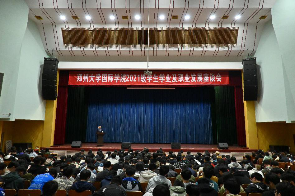 3月21日晚上19点,郑州大学国际学院2021级学生学业及职业发展座谈会在郑州大学北校区科技报告厅举办,学院党委书记吴国新,院长魏胜强,党委副书记、纪委书记赵强,党委副书记庄琼琼,副院长余义芳,副院长贾晓燕,学院辅导员老师以及2021级1000余名学生参加了本次座谈会。会议由院党委副书记庄琼琼主持。