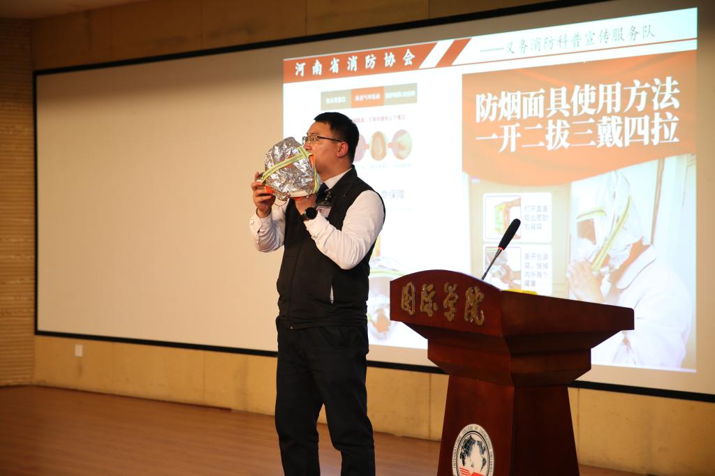 图1.河南省消防协会教员李林峰为我院师生进行消防安全培训讲座