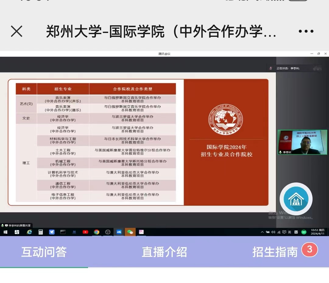 为进一步扩大学院在全国的办学影响力,方便广大考生对我院基本情况和招生政策的了解,更好地搭建我院与家长和考生之间的沟通桥梁,吸引更多的优质生源报考我院。4月11日—14日,我院参加由高考宝联合新东方国际教育集团举办的2024第二届中外合作办学巡展及在线直播活动。此次活动分为两部分,在线直播及线下巡展。