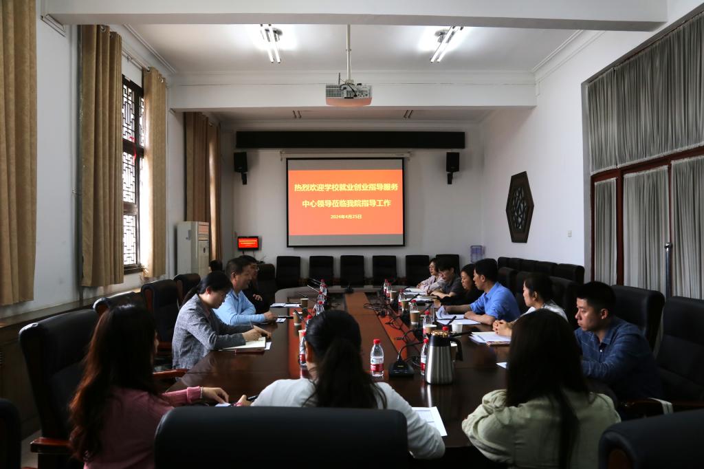 4月25日上午,学校就业创业指导服务中心主任申新生、副主任谷辉辉、办公室主任李玉娜一行三人到我院调研指导毕业生就业工作。学院党委书记吴国新、党委副书记庄琼琼、就业办老师、全体毕业班辅导员参加会议。