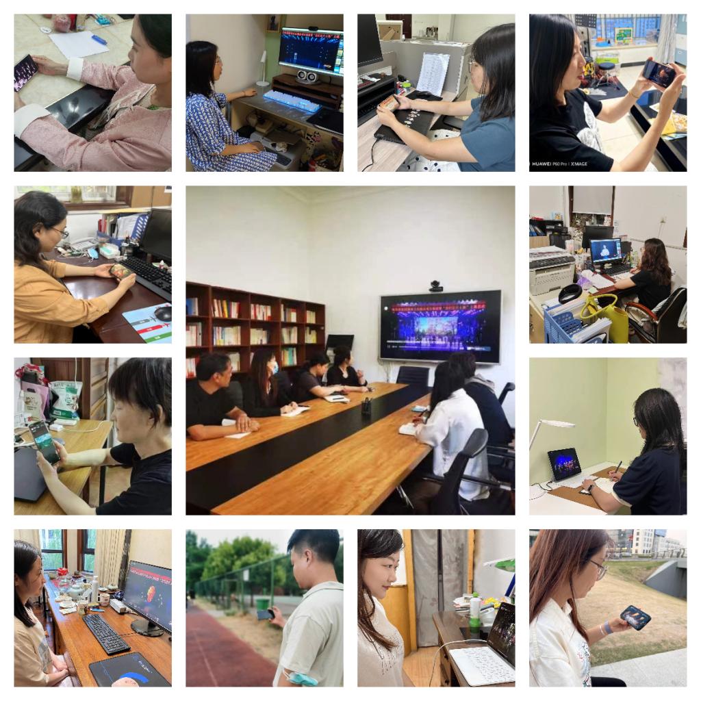 图2.国际学院教职工在会议室、办公室、家等场所收听收看主题思政课