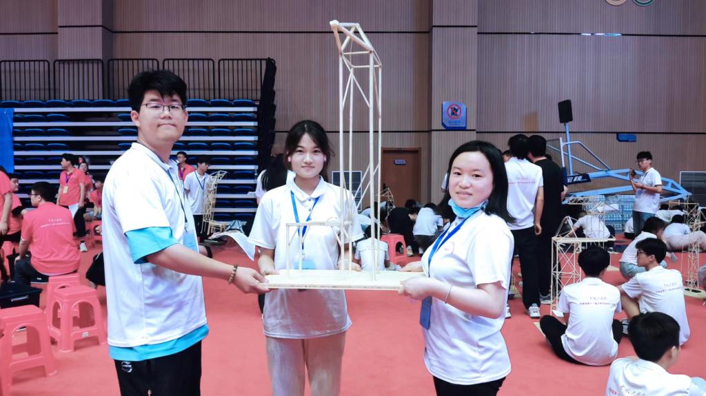我院两支代表队在省赛赛场上经过结构模型制作(十六小时)、结构理论方案和计算书评审、专家现场答辩以及结构模型加载测试等环节的激烈角逐,发挥出了水平,最终“千载易乘队”获得三等奖(队员:22级土木工程石东宇、张逸飞、杜瀚哲;指导教师:李小鹏、郜蕾),“可上九天揽月队”获得优秀奖(队员:22级土木工程刘怡涵、张晶涵、罗祎宁;指导教师:李乐、郭鸽)。