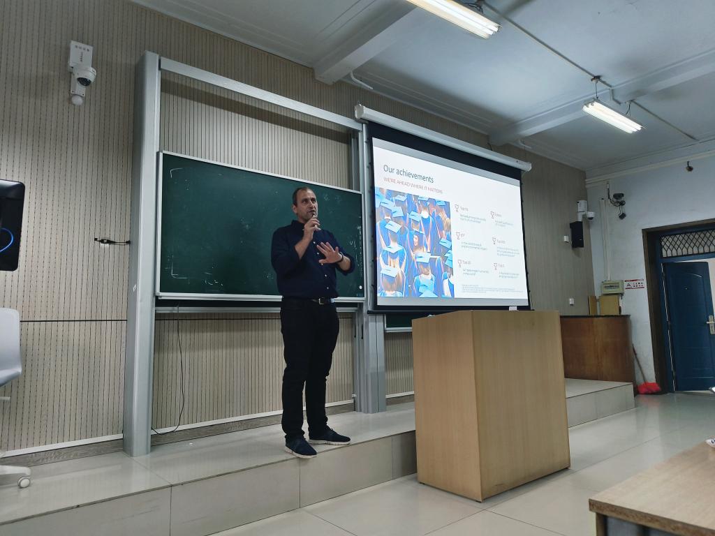 Raad教授为同学们介绍了伍伦贡大学的地理环境、学校排名、取得的成就以及电气计算机与通信工程学院的教学科研情况。同时,也为同学们介绍了中国留学生毕业后在世界各地的就业情况。Raad教授鼓励同学们在校期间认真学习,也对有意向到伍伦贡大学继续学习的同学表示热烈欢迎。