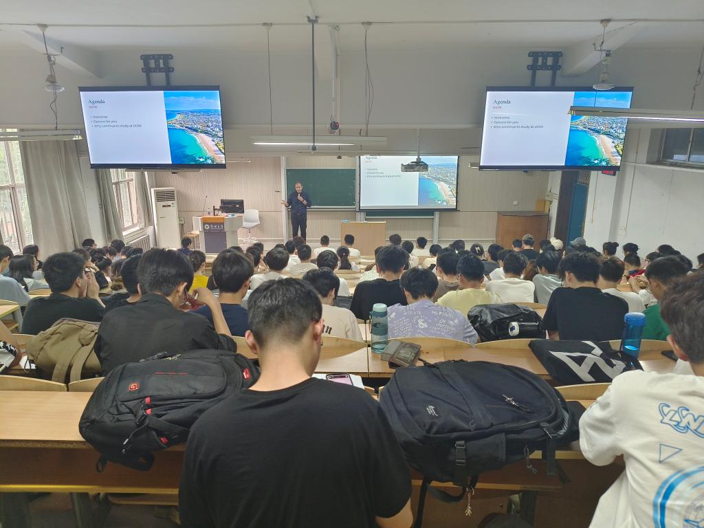 6月6日下午,澳大利亚伍伦贡大学电气计算机与通信工程学院院长Raad教授为我院2022级计算机科学与技术、电子信息工程、通信工程三个专业的同学召开学生交流项目宣讲会,主题为“Study in University Of Wollongong(UOW)”。