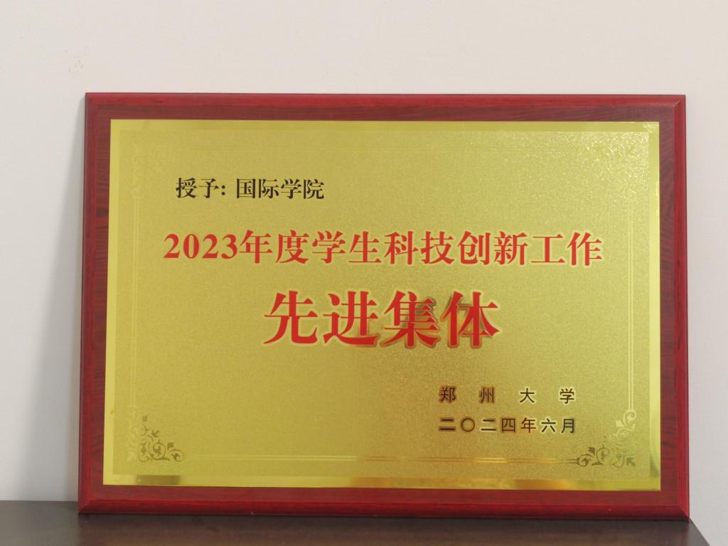 6月17日,郑州大学召开2023年学生科技创新工作表彰大会。会议对2023年度本科生科技创新工作先进单位和个人进行了表彰,国际学院荣获“郑州大学2023年度本科生科技创新工作先进集体”称号。