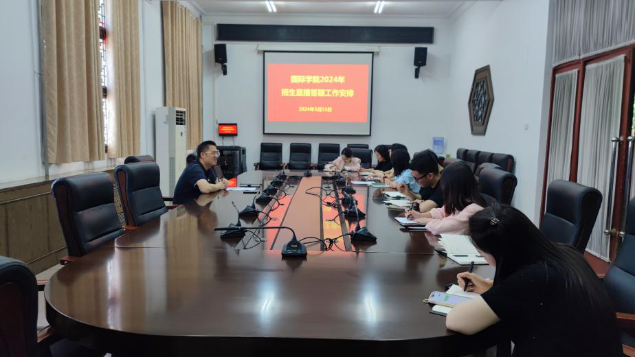 5月18日,由郑州大学招生办公室主办,我院承办的“‘专’为你讲,‘郑’在直播|郑州大学2024年招生宣讲线上直播—国际学院专场”在我院行政楼219会议室举办,院长魏胜强担任本次宣讲主讲人,学院团委、学生工作办公室、教学办等多部门负责老师全程参与,负责线上答疑,进一步帮助广大考生、家长深度了解我院。