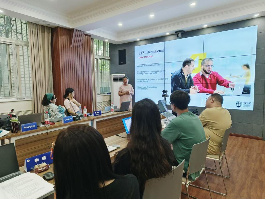 为进一步提高与伍伦贡大学合作举办的“4+0”双证项目的办学质量及我院ETS教师的授课水平,近日,我院邀请澳大利亚伍伦贡大学对ETS教师进行了为期5天的培训。伍伦贡大学学院全球项目主任Heather Thomas,ETS教学主任Luqing Wang以及ETS培训老师Alison Mary Foley负责本次课程培训。