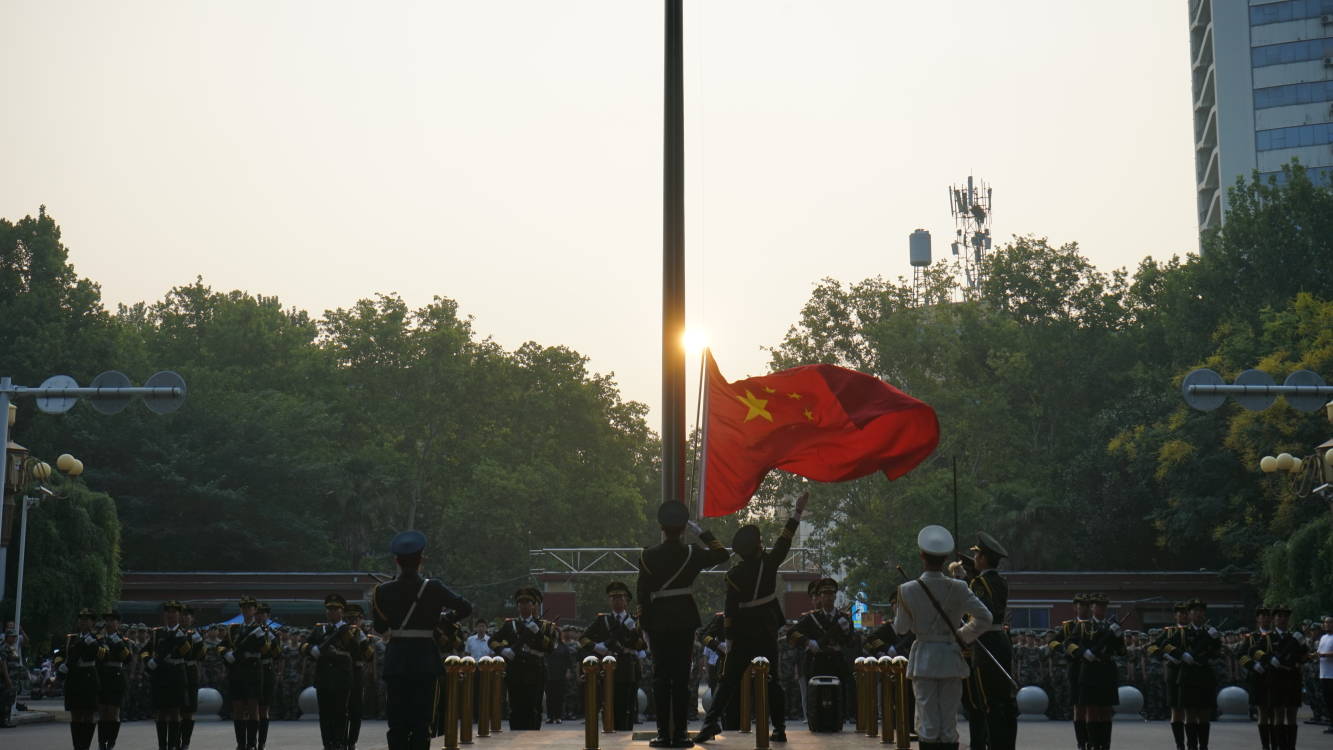 在清晨的微光中,国旗护卫队身着笔挺的制服,在庄严的国歌声中,缓缓升起鲜艳的五星红旗。全体师生肃立,面向国旗行注目礼。他们齐声高唱国歌,歌声高亢有力,表达了对祖国的崇高敬意,激发了师生们强烈的爱国情怀和责任意识。