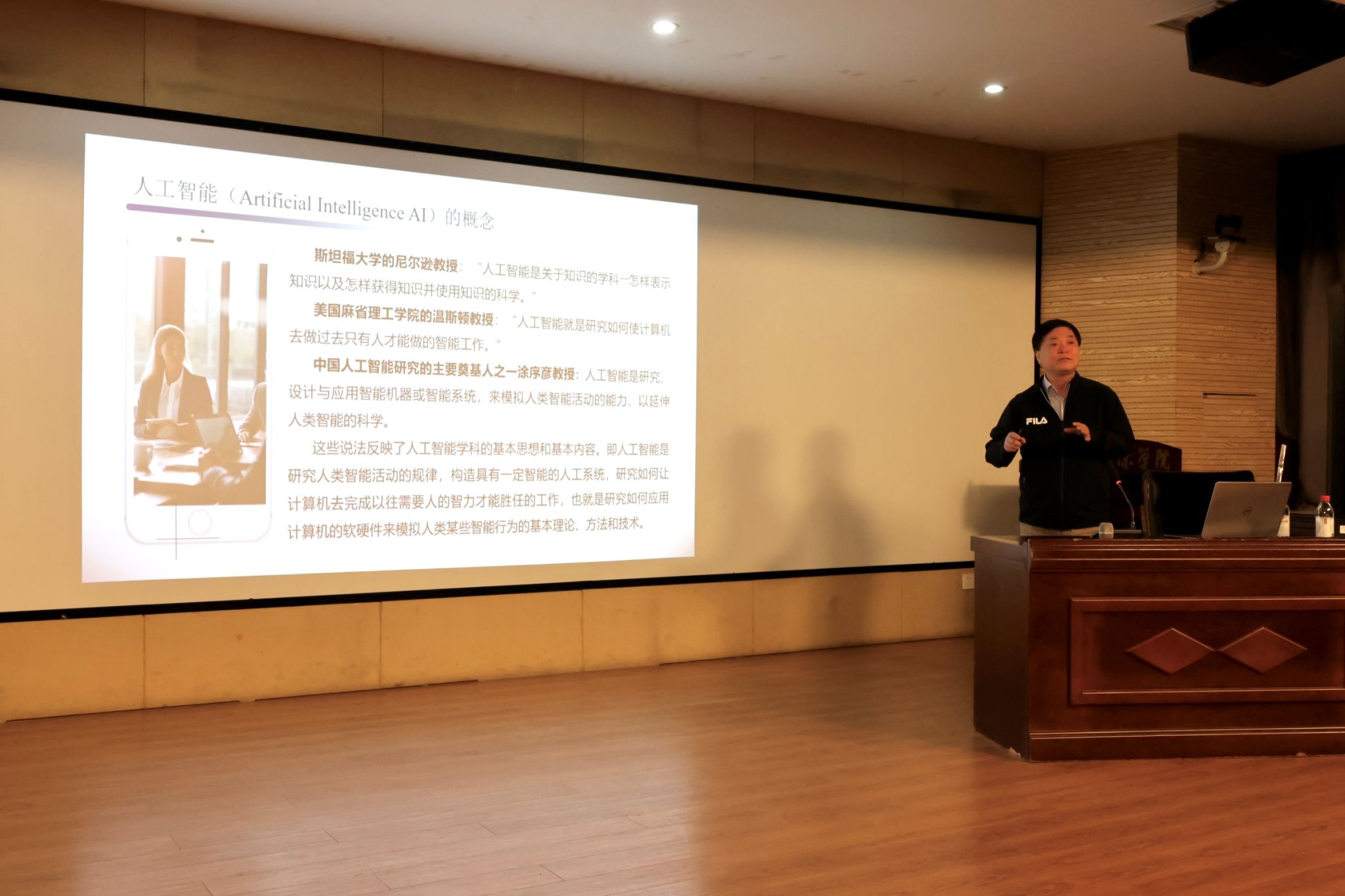 首期讲座于 4 月 8 日晚 7 点在南校区教 14 号楼 201 报告厅举行。学院特邀郑州大学计算机与人工智能学院徐江峰教授担任主讲嘉宾。他以《人工智能的发展历程、技术演进及应用》为题,围绕人工智能的现状、发展方向及未来挑战,从以下三个维度展开深入探讨:一是系统梳理人工智能的核心概念、分类以及发展历程;二是剖析人工智能关键技术,并展示其在多领域的应用实例;三是探究人工智能发展面临的挑战以及未来趋势。此外,徐江峰教授还结合我院各工科专业特色,深入分析了人工智能可能对各行业的影响,以及带来的机遇与挑战,为学生们拓展了专业视角。