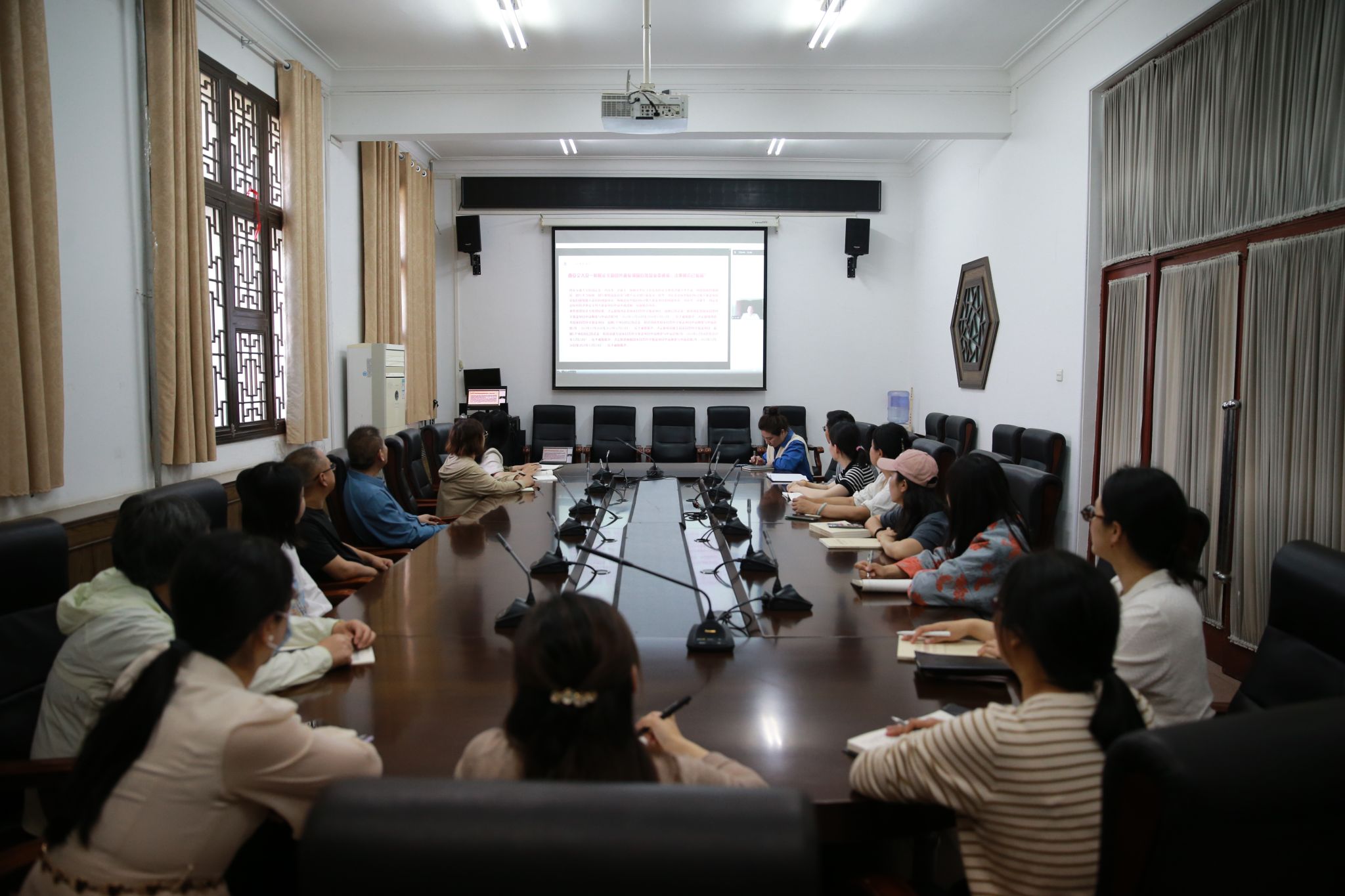 图1.国际学院、惠灵顿学院教职工学习收看高校教师职业行为的法律风险及其防范主题讲座现场