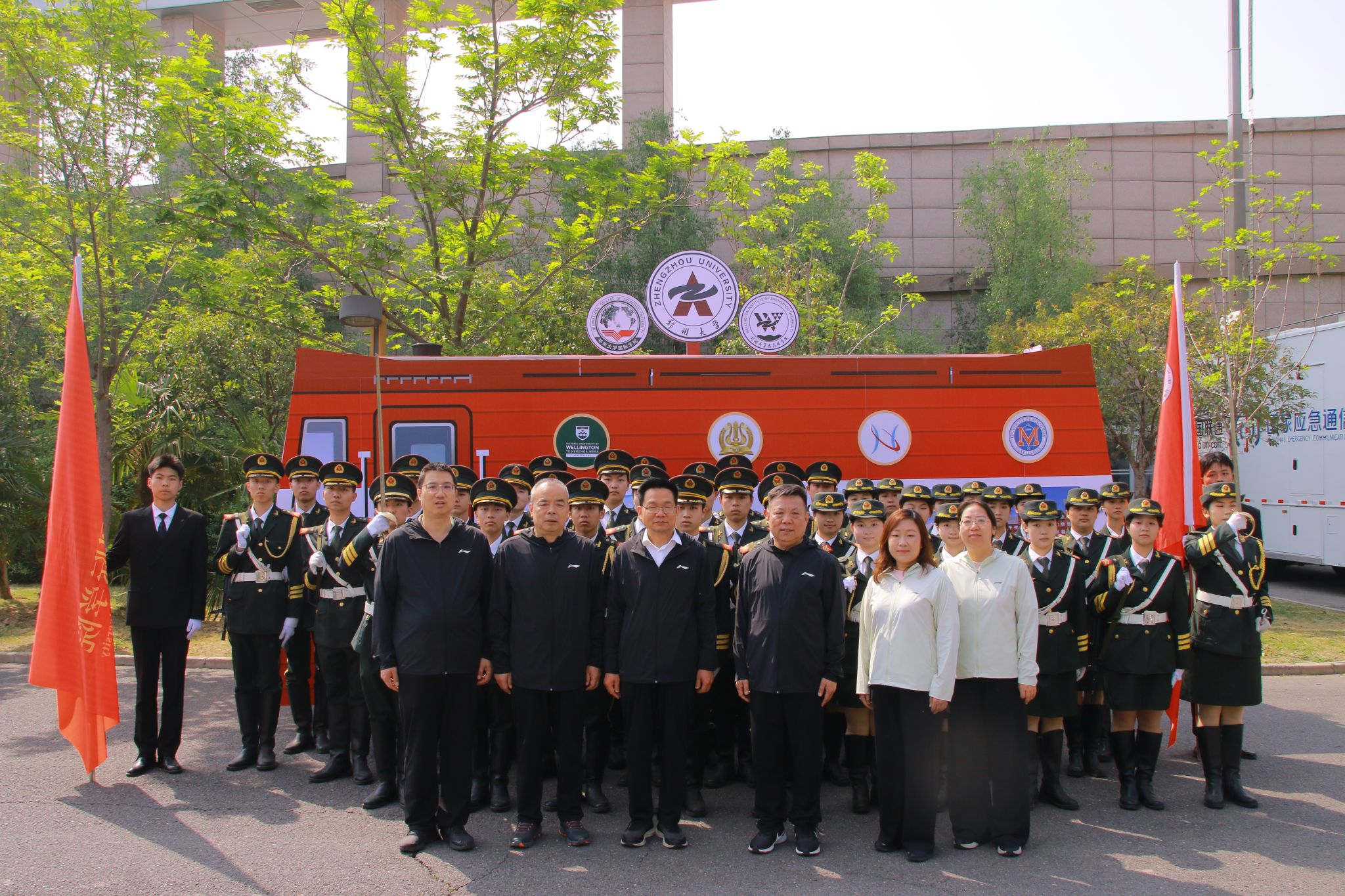 图8. 学院领导与我院学生国旗护卫队、花车合影