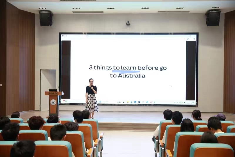 5 月 16 日上午,学院面向伍伦贡“4+0”双证项目的学生举办“踏出舒适圈:留学工作打怪升级指南”主题讲座。此次讲座的主讲嘉宾为英国政府数字贸易创意和教育技术总监、乐卓博大学博士后张小辰博士。讲座旨在为学生提供留学和职业发展指导,助力学生在未来的道路上更好地应对挑战,实现自我提升。国际学院、惠灵顿学院院长陈思坤、国际合作办公室相关人员参加本次讲座。讲座由国际学院副院长贾晓燕主持。