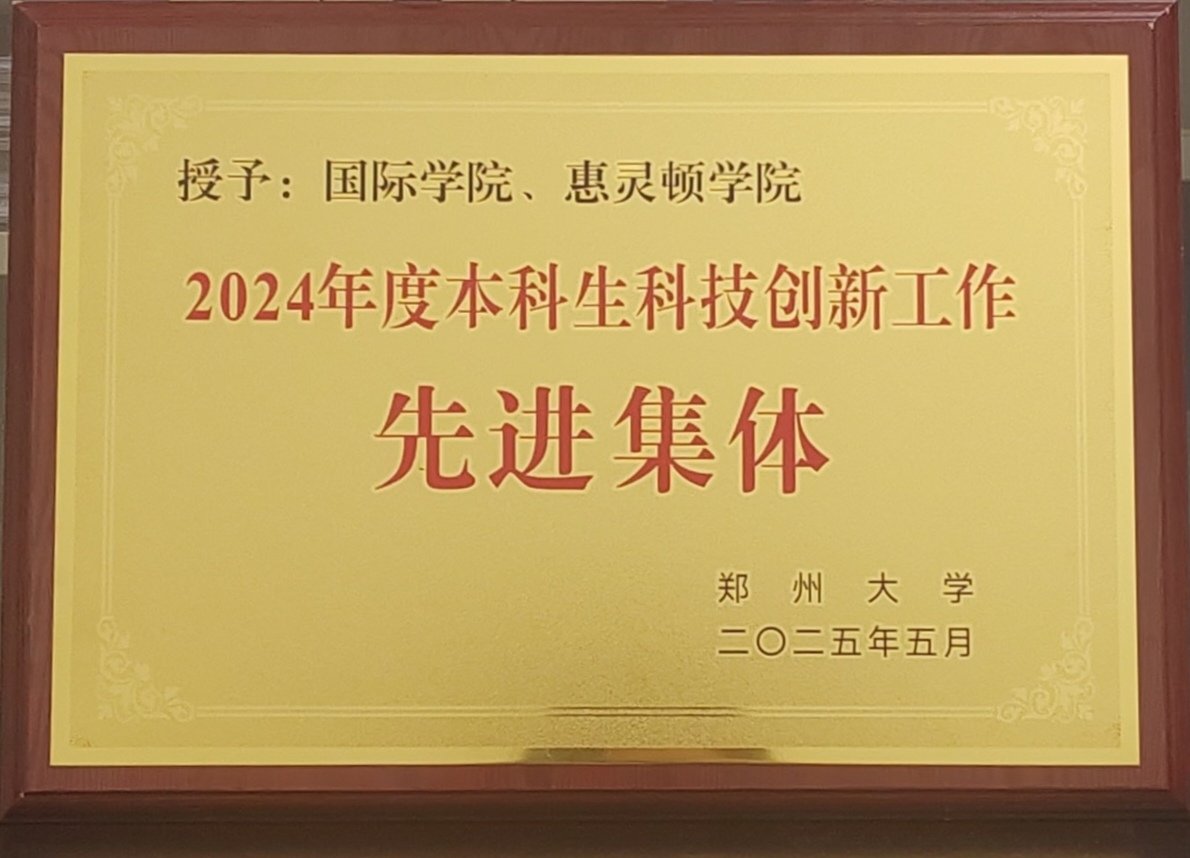 5月28日,郑州大学召开2024年学生科技创新工作表彰大会。会议对2024年度本科生科技创新工作先进单位和个人进行了表彰,学院荣获“郑州大学2024年度本科生科技创新工作先进集体”称号,7名学生荣获“郑州大学2024年度本科生科技创新、学科竞赛先进个人”称号。