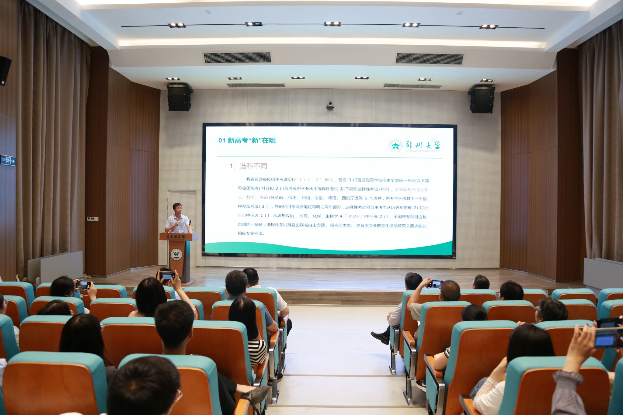 刘世民以《新高考政策介绍》为题作专题培训报告。主要围绕郑州大学基本情况、招生政策、录取规则、报考建议等维度展开深入解读。同时,针对招生宣传工作中的重点难点问题进行剖析与指导。报告内容兼具针对性与实操指导性,为学院扎实做好2025年招生宣传工作提供了强有力的专业支撑与保障。