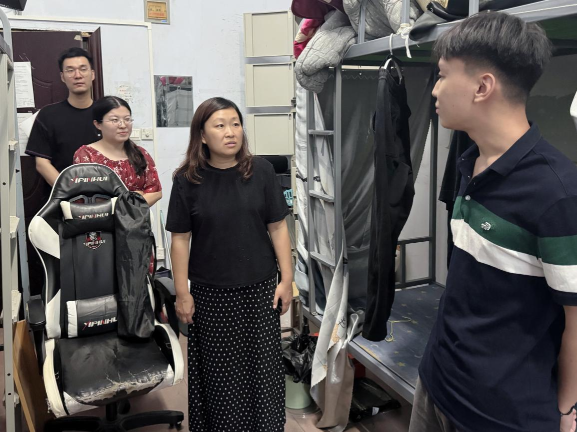 图1.庄琼琼带领辅导员走访2025届毕业生宿舍
