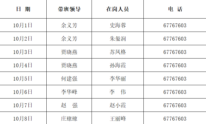 为确保节假日期间学院的安全稳定,值班人员需严格按照《国际学院、惠灵顿学院值班管理制度》要求,认真落实值班工作各项事宜,具体安排如下:
