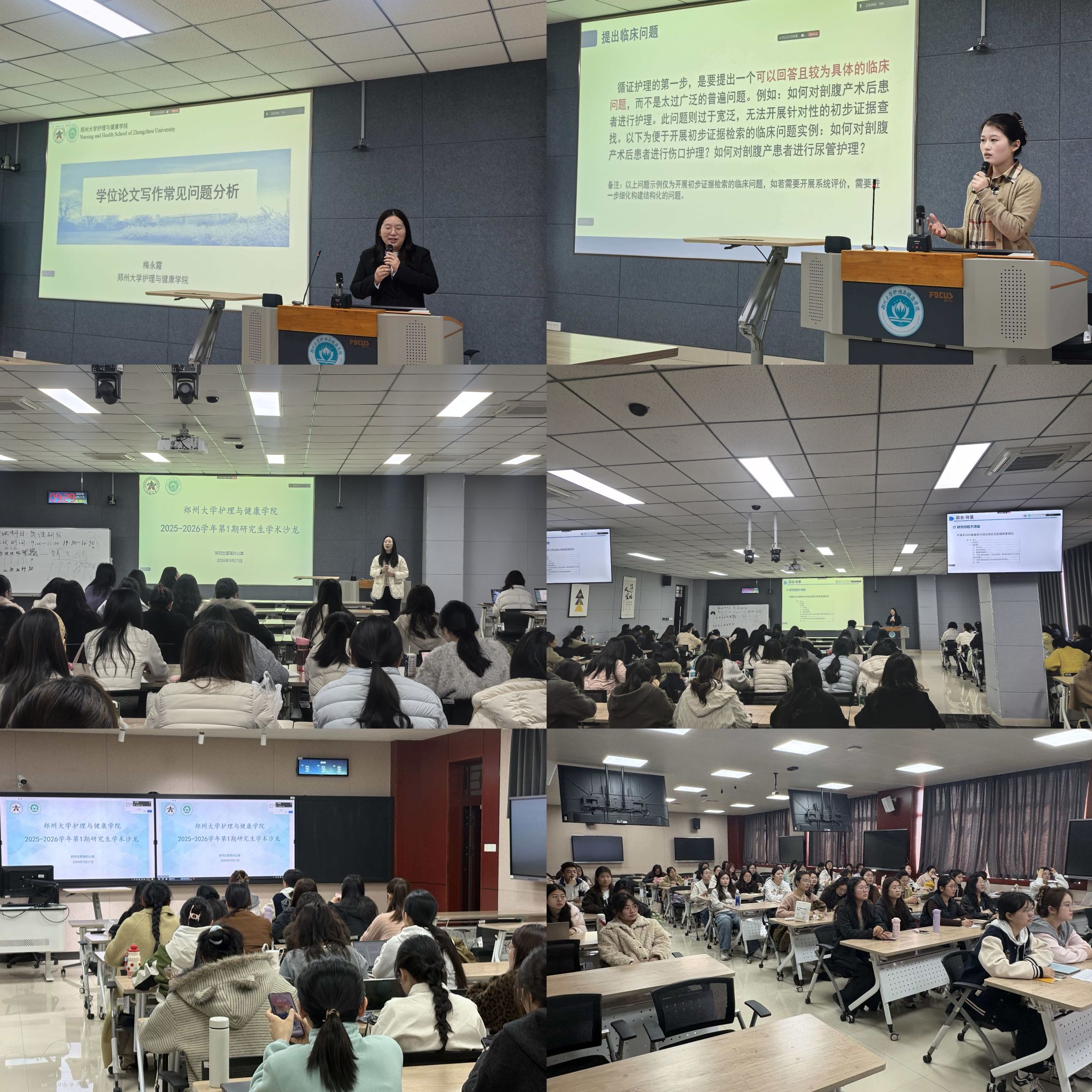 沙龙上,梅永霞副教授以“学位论文写作常见问题分析”为主题作专题分享。她指出,学位论文是一项完整系统的研究成果,而非小论文的简单拼接。结合典型案例,她深入剖析了同学们在论文选题凝练、摘要撰写、研究背景梳理、研究设计逻辑等方面存在的共性问题,强调研究变量选择须有扎实理论依据,干预方案设计应突出人群特异性,并勉励大家精雕细琢、精益求精,努力将学位论文打磨成学术成长路上的精品之作。
