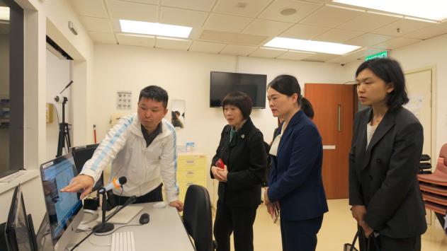 随后,香港理工大学护理学院实验室主任Mr. Xavier LEUNG带领我院交流团队参观了该院的实训室和实验室,详细介绍了该院特色的中医护理技术、ICU及产科的情境模拟教学。