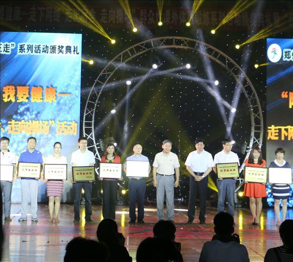 ,在郑州大学2014年“三走”系列活动颁奖典礼会上,我院荣获“优秀组织奖”,我校副校长宋毛平同志为我院颁奖,院团委书记鲍滢滢老师上台领奖。