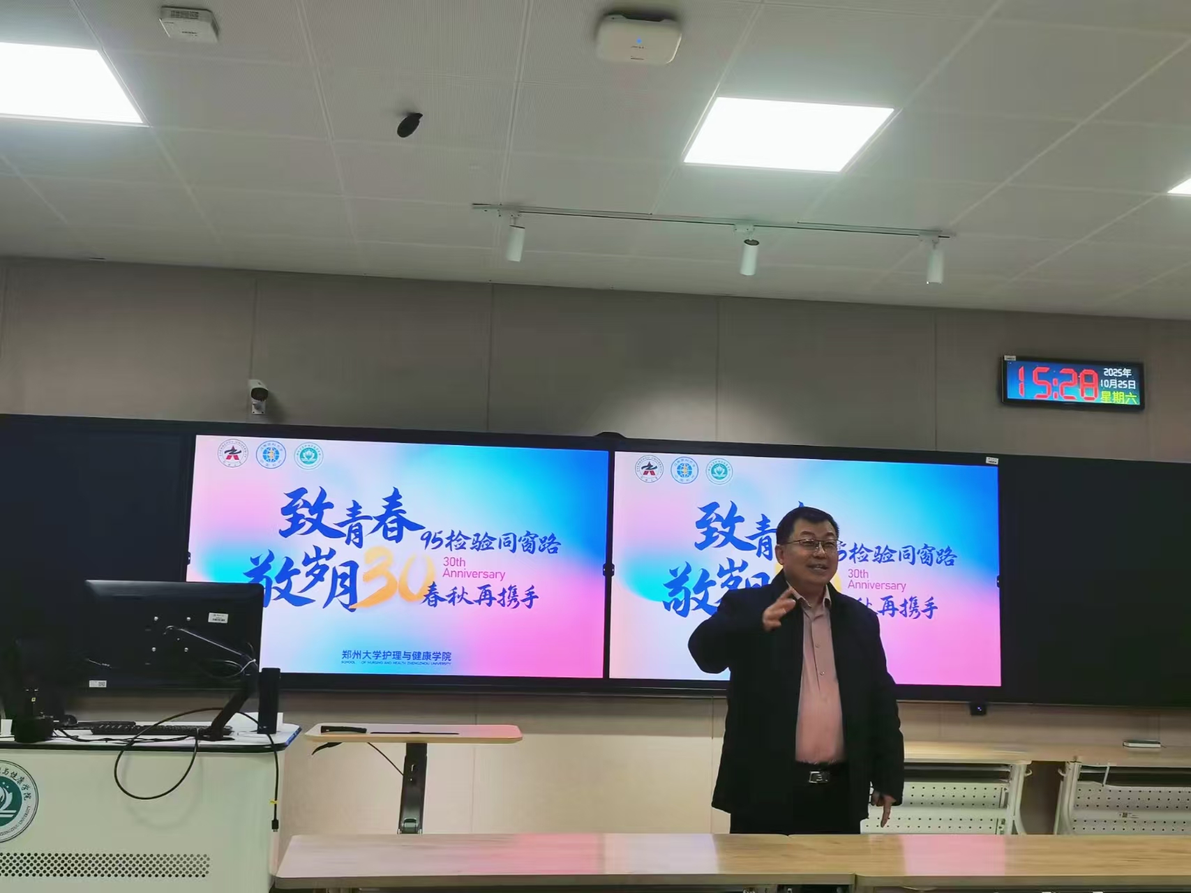 2025年10月25日下午,郑州大学护理与健康学院1995级检验专业50余名校友返校,顺利举办了“三十载春秋,归来仍少年”为主题三十周年庆祝活动。学院党委副书记邹红云、党政办公室主任王璠、时任班主任林新平老师出席了此次返校活动。