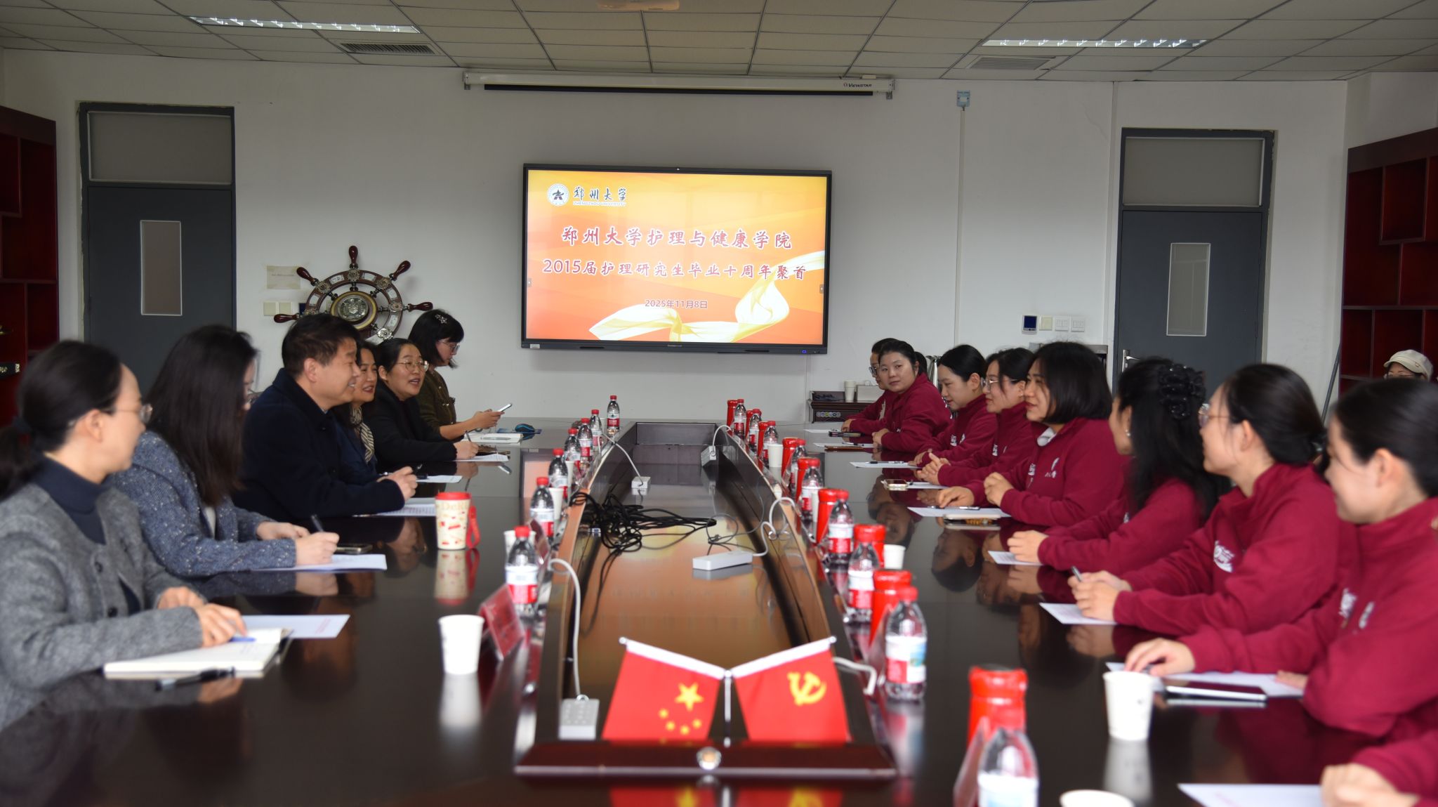 2025 年 11 月 8 日,郑州大学护理与健康学院 2015 届护理研究生 9 名校友重返母校,以 “三年同窗伴 一生姐妹情” 为主题举行毕业十周年返校活动。学院党委书记刘鑫,党委副书记、纪委书记邹红云、党委副书记李振伟,副院长徐晖、刘东玲,时任辅导员史岩以及部分教师代表与校友们欢聚一堂,共忆青春岁月,共话事业发展。活动由邹红云副书记主持。
