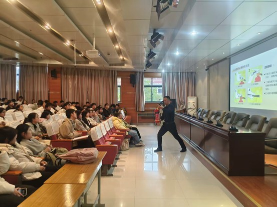 下午4时30分,消防知识讲座在报告厅准时举行。省政宣消防科普服务中心鲁教员应邀担任主讲嘉宾。讲座围绕“预防为主,生命至上”的主题,结合近年来高校典型火灾案例,深入浅出地讲解了火灾的成因、常见消防设施的使用方法、初期火灾扑救技巧以及火场逃生的基本原则。通过播放真实火灾视频、展示火灾现场图片,主讲人警示同学们在宿舍内严禁使用大功率电器、私拉乱接电线等危险行为,强调“隐患险于明火,防范胜于救灾”的重要理念。