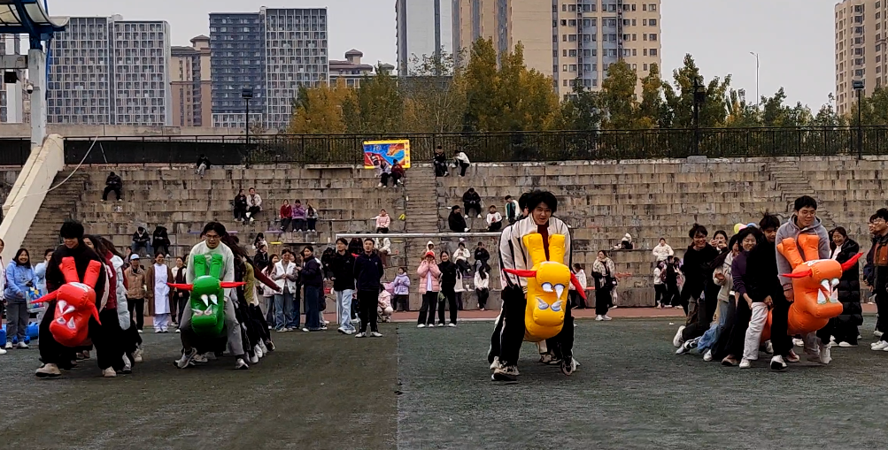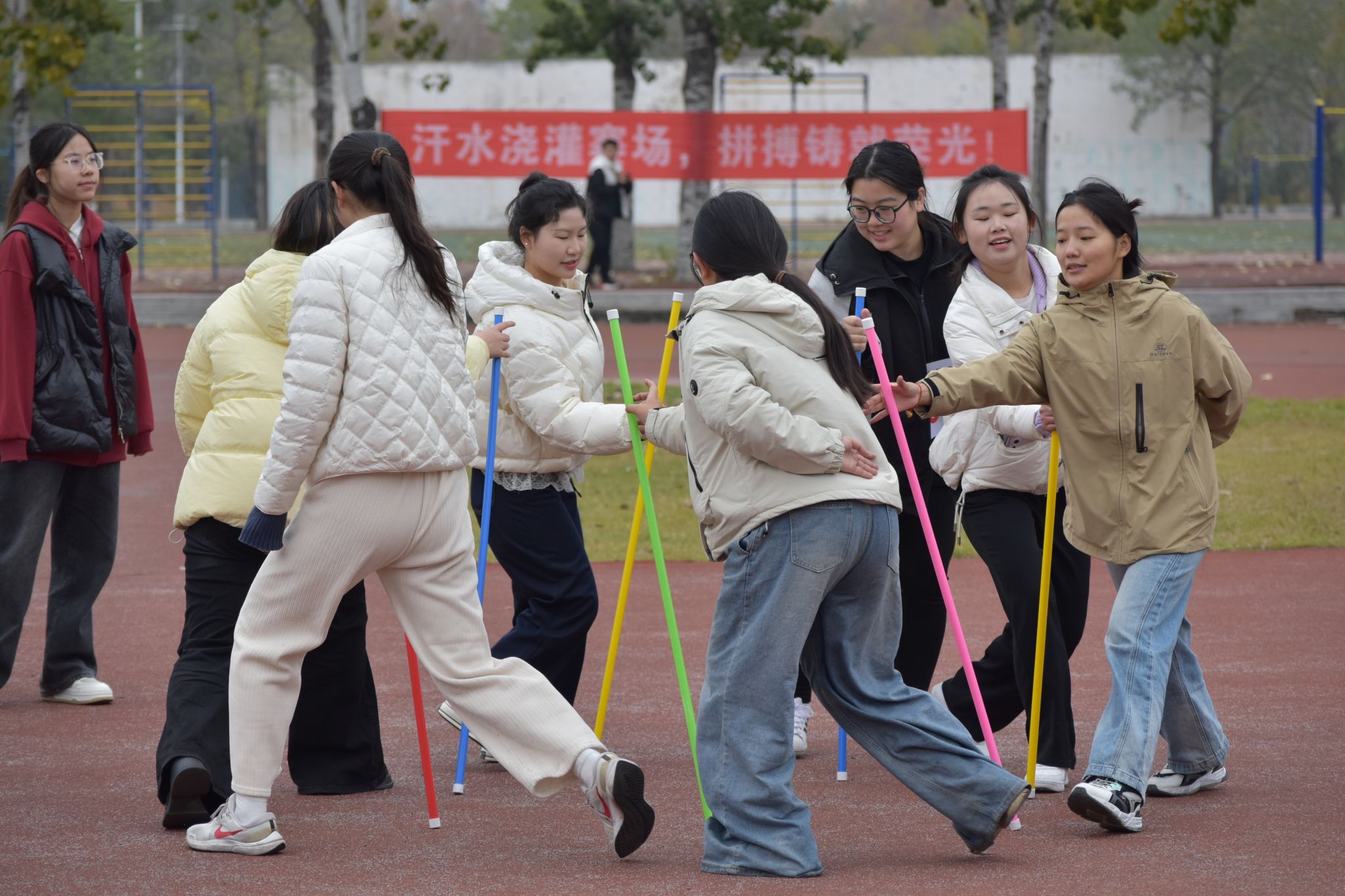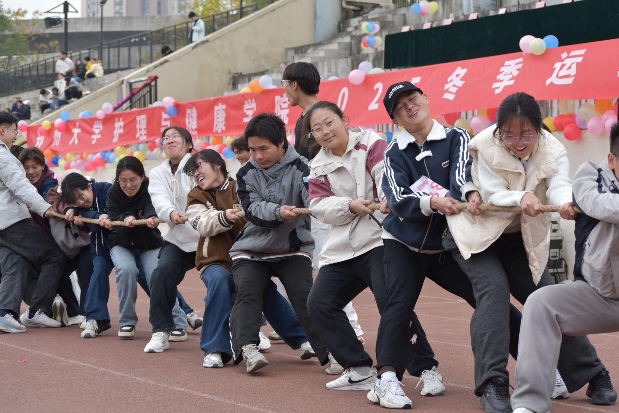 本次赛事分设学生竞技与师生趣味两大板块,学生竞技组涵盖100米、400米、平板支撑、跳小绳、10×50米接力赛、拔河等6项竞技项目,师生趣味组则进行旱地龙舟、两人三足、摸石过河、四平八稳、运转乾坤、毽子掷准、蒙眼敲锣等十余项趣味项目。竞技场上,学生选手竞速拼耐力,尽显“与时间赛跑”的护理特质;趣味项目中,大家协同配合,乐在其中,纷纷打卡留念。赛场各处欢声笑语不断,加油助威声此起彼伏,师生同场竞技的画面成为冬日里最暖的风景。