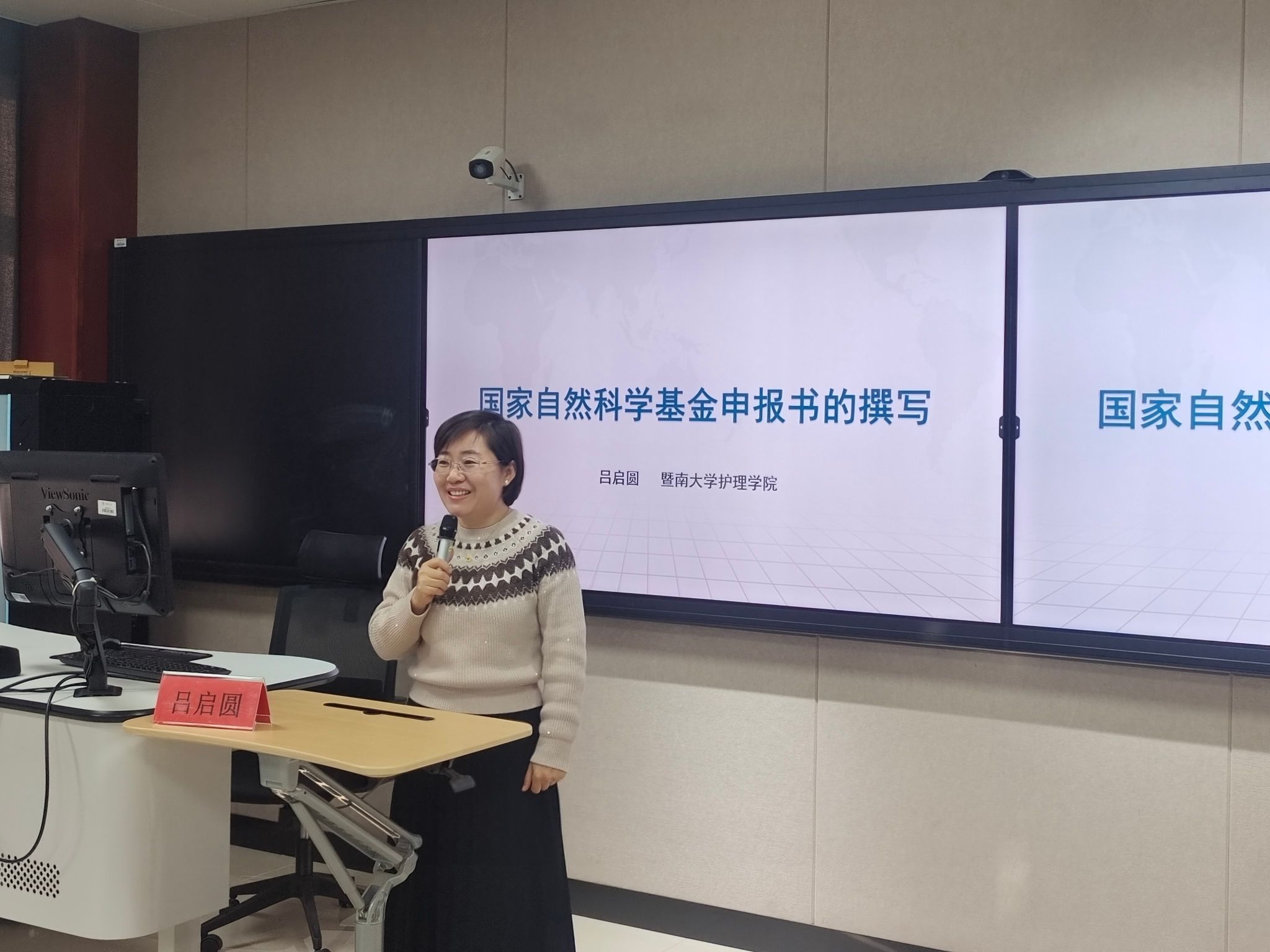 为扎实推进2026年度国家自然科学基金项目申报工作,11月27日上午,学院在503智慧教室举办国家自然科学基金项目申报经验分享专题讲座。讲座由刘东玲副院长主持,学院科研骨干及拟申报2026年国家自然科学基金项目的教师60余人参加学习。2025年度国家自然科学基金获得者、暨南大学吕启圆副教授以“国家自然科学基金项目申报的撰写”为题做专题报告。