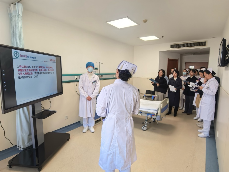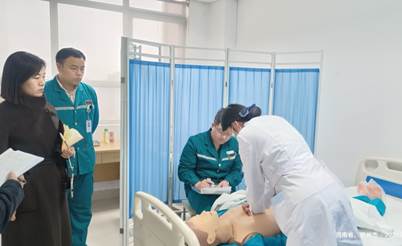 在郑州大学第一附属医院、郑州市中心医院的检查交流过程中,现场观摩了实习生综合能力考核。实习医院经过前期的精心筹备,采用OSCE(客观结构化临床考试)模式,设计心内科、神经外科、骨科等核心科室的常见护理场景,重点考查学生系统评估能力、操作技能、临床决策能力、沟通能力及人文关怀素养。严密的考核组织与多元的评价维度,有效检验了学生知识、技能、态度的综合素质。