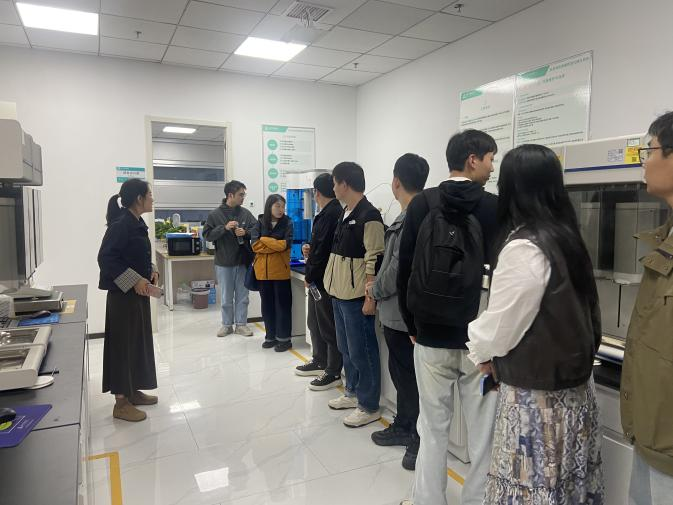 一行人参观了材料测试实验室,近距离观察了扫描电子显微镜、X射线光电子能谱仪、X射线衍射仪、全自动比表面及孔隙度分析仪等设备操作过程,了解这些技术在电池材料等化工领域的应用实例。特别值得一提的是,团队成员体验了“实时定位手环”等科技设备,了解其在科研测试中的创新应用,体现了科学指南针的前瞻性思维。