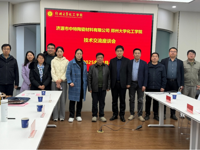 12月4日,济源市中特陶瓷材料有限公司董事长邢五洲一行到访郑州大学化工学院,就科研合作、技术开发、成果转化及人才培养等事宜开展座谈交流。学院副院长张亚涛、关键金属选冶与高纯制程全国重点实验室副主任李国胜及相关教师代表参加会议。学院党委书记李海涛主持会议。