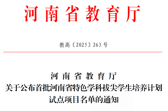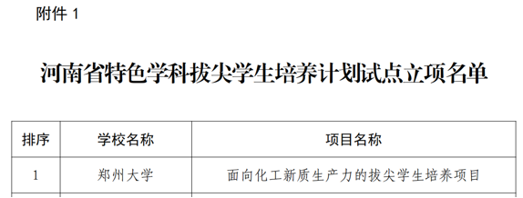 近日,河南省教育厅正式公布2025年特色学科拔尖学生培养计划试点立项名单。经高校申报、专家严格评审,郑州大学化工学院申报的“面向化工新质生产力的拔尖学生培养项目”成功获批,成为全省首批11个立项建设的“特色学科拔尖学生培养试点项目”之一。