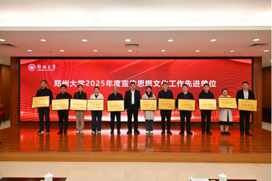 3月23日,郑州大学宣传思想文化工作表彰会议在主校区举行。化工学院荣获2025年度“宣传思想文化工作先进单位”和“党委理论学习中心组学习示范班”两项荣誉称号,展现了学院在思想引领、文化育人、理论武装等方面的扎实成效。