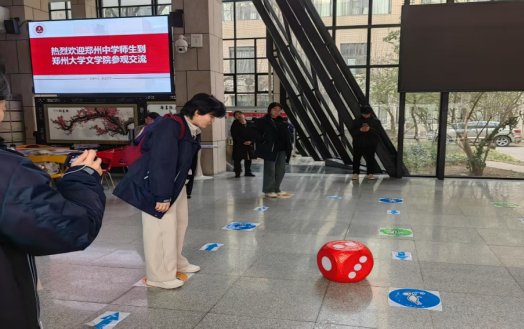 此外,中心师生还精心参与组织古文字研学活动。2025年1月,80余位郑州中学的高中生来到郑州大学文学院开展研学活动。支部党员带领来访高中学生,开展甲骨文刻写、青铜器浇筑、甲骨文飞行棋等活动,让学生们沉浸式感受汉字文化的深厚底蕴;学生团队成员以“了不起的甲骨文:字中日月有乾坤”为题,讲解甲骨文知识,普及汉字文化,让同学们在欣赏汉字之美的同时,更加深刻地体会到了中华文化的博大精深和源远流长。