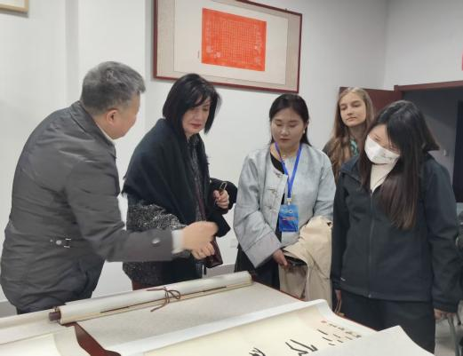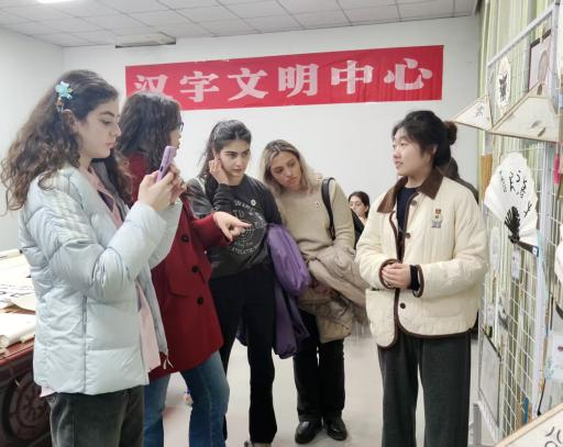 2025年3月11日,由教育部中外语言交流合作中心主办、郑州大学承办的“汉语桥”格鲁吉亚来华研学体验营在郑州大学开营。中心教师带领国际师生参观汉字文明研究中心,讲解“何尊”上的“中国”,观览甲骨片,欣赏学生古文字书法和文创作品。