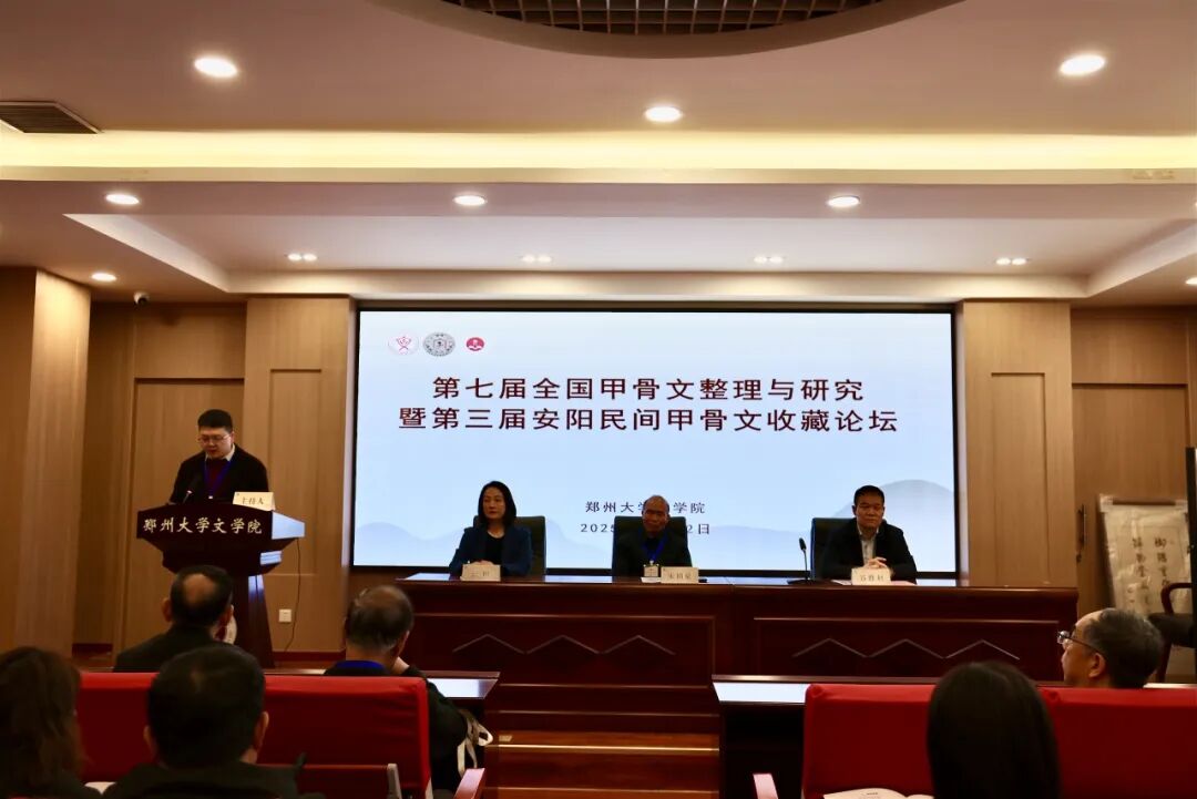 2025年11月22日,“第七届全国甲骨文整理与研究暨第三届安阳民间甲骨文收藏论坛”在郑州大学召开。本次会议由郑州大学文学院、安阳师范学院甲骨文信息处理教育部重点实验室联合主办,“古文字与中华文明传承发展工程”协同攻关创新平台、郑州大学汉字文明研究中心、河南省文字学会共同承办,来自全国高校、科研机构、文博单位的专家学者、民间甲骨藏家及文化保护工作者70余人参会,会议围绕甲骨文整理与研究、甲骨文数字化、民间藏甲的保护与利用等议题开展深入探讨。