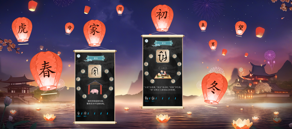 沿眉湖东岸延伸的“字润华夏”主题区展示了汉字在不同载体上的应用及文化内涵:从铭刻“武王征商”的利簋,到首次出现“中国”一词的何尊;从吴越兵器上精美神秘的鸟虫书,到战国中山王鼎上镌刻家国箴言的悬针篆;从楚地帛书的浪漫想象,到秦简汉隶的规矩方圆……汉字在不同载体上的形态流变与其承载的厚重历史,勾勒出中华文明发展的宏阔轨迹。