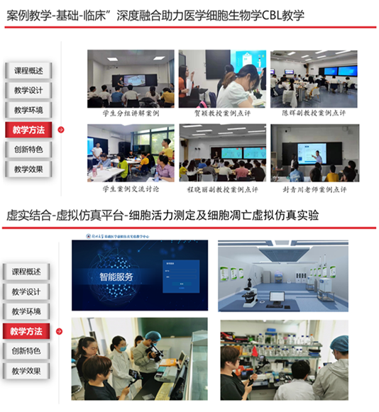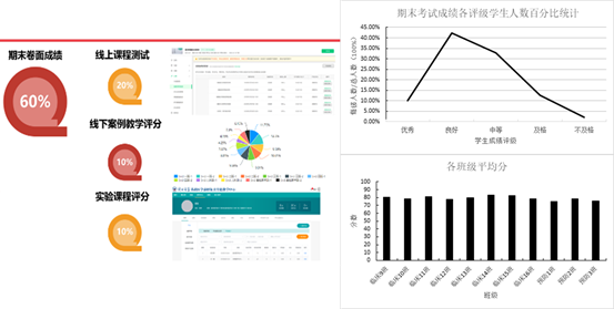 我们通过过程评价、书面报告、线上测试、案例汇报、实验报告等形式建立多维的教学评价体系。依托中国大学MOOC平台,学生课前进行视频预习及弹题测试,课后进行章测试。在厚山学堂平台发布典型医学案例,学生以小组为单位进行总结,PPT汇报,最终小组同伴,学生,教师分别对其进行客观评价。细胞实验线上资源在虚拟仿真实验中心平台运行,实验结束后,学生在平台提交实验报告。