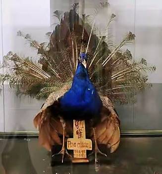 此孔雀原在郑州市碧沙岗公园饲养,孔雀死亡后,由邓之真教授带领河南医学院生物教研组师生完成了孔雀标本的制作。标牌上记载了“孔雀Pavo cristatus L. 河南医学院生物教研组 1964年3月制”现存于郑州大学基础医学院A2-626室。