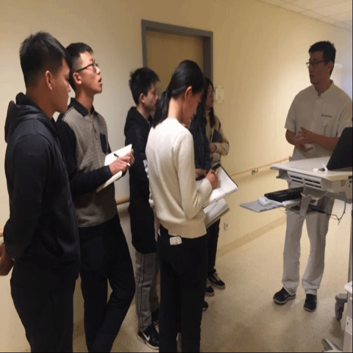 参观完手术室,刘医生带领大家去病房查房,通过对十六个病例的分析讨论,让同学们体验了一次在德国当医生的感受,对于德国的临床治疗流程,人文关怀,医患沟通等方面也有了更详细的了解。