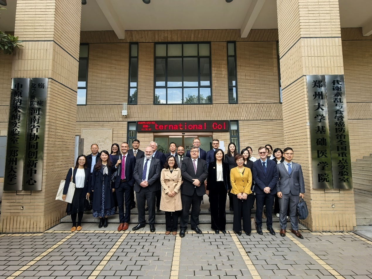 Dominic McAllister麦多明总领事等介绍了英国医疗教育体系的特色与优势。Dominic McAllister麦多明总领事表示,中国医学教育近年来发展迅速,郑州大学基础医学院在学科建设和人才培养方面的成就令人印象深刻,希望以此次访问为契机,推动双方在多个领域开展实质性合作。