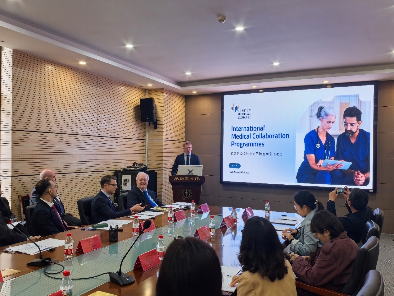 10月13日,由英国驻武汉总领事馆总领事Dominic McAllister麦多明率领的英国医疗代表团一行莅临我院开展参观访问与合作洽谈。我院副院长李沛教授、臧明玺教授、基础医学院相关职能部门负责人、教师及学生代表等热情接待了代表团,双方围绕医学人才培养、教学模式创新、学术资源共享等议题展开深度交流。