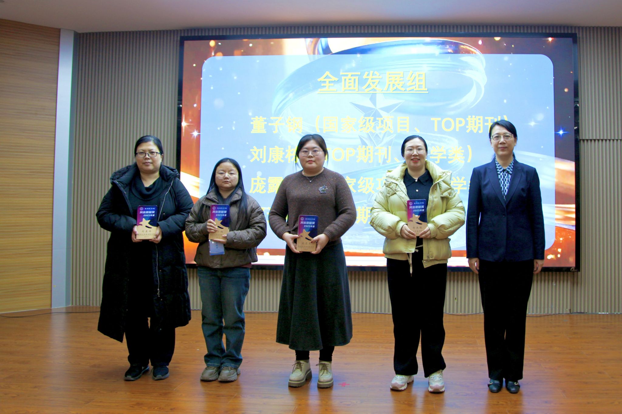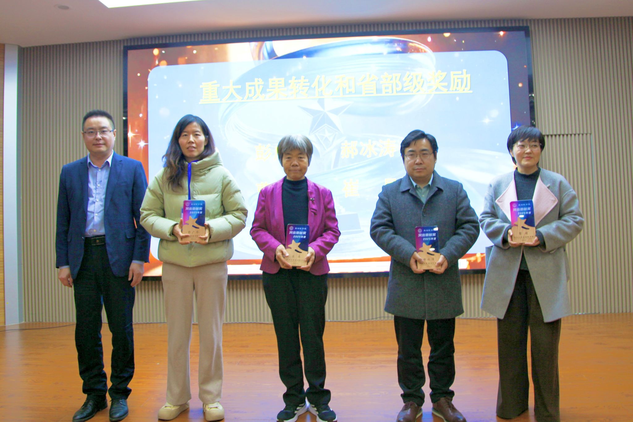 1月15日,郑州大学基础医学院2025年度突出贡献颁奖典礼隆重举行,教职工代表齐聚一堂,学院领导班子成员出席并为获奖者颁奖,共庆硕果、凝聚力量。